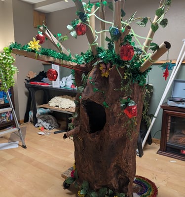 With a tree full of hidden surprises, cleverly crafted puns, and ever changing scenery powered by creative lighting, pulley systems, balloon magic, and even flying apples, their performance kept us on our toes.